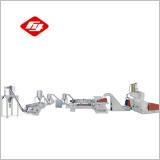 PVC電纜料造粒機使用雙階式造粒機組。先將物料喂入雙螺桿擠出機,塑化后第二階單螺桿擠出機,構成雙階式復合機組,基本結構形式:特點:將雙螺桿高速,強混煉與單螺桿低速,低溫,弱剪切特性相結合,揚長避短,是當今熱敏性,剪敏性物料高效配混改性的首選機型。適用于:PVC電纜料造粒機,鞋底料,透明瓶料,醫用料的生產。此套設備具有下列優點:優良的混煉效果及溫度控制容易。使用較小的電力和占地面積。原料的混煉及制粒流程是全自動(自動連線控制),減少人員操作。此套設備不需要特殊的操作技術,生產高品質的產品而操作簡單。具有優良的安全性。溫度控制容易,因此減少原料的損害及變質。