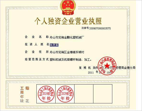 舟山市定海金鵬化塑機(jī)械有限公司