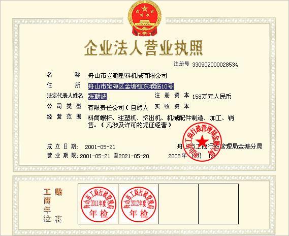 舟山市立潮塑料機(jī)械有限公司