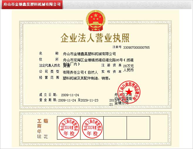 舟山市金塘鑫昊塑料機械有限公司