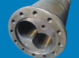 技術指標:38CrMoAIA,氮化處理,表面硬度:HV≥900,氮化層深度:0.5-0.8mm,表面鍍鉻硬度≥1000HV,鉻層厚度0.01-0.10mm,雙合金硬度HRC60-70,雙合金層深度>2mm.螺棱表面采用雙合金燒焊,有效的提高螺桿的使用壽命。料口易磨損部分采用進口合金鋼材,經過特殊處理,能有效提高機筒耳朵耐磨性,提高使用壽命。