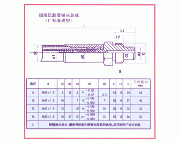 | 管內(nèi)徑 | 公稱通徑 | 工作壓力Mpa | 膠管鋼絲層外徑 | d | 扳手尺寸 | LO | L | D(參考) | |||||||